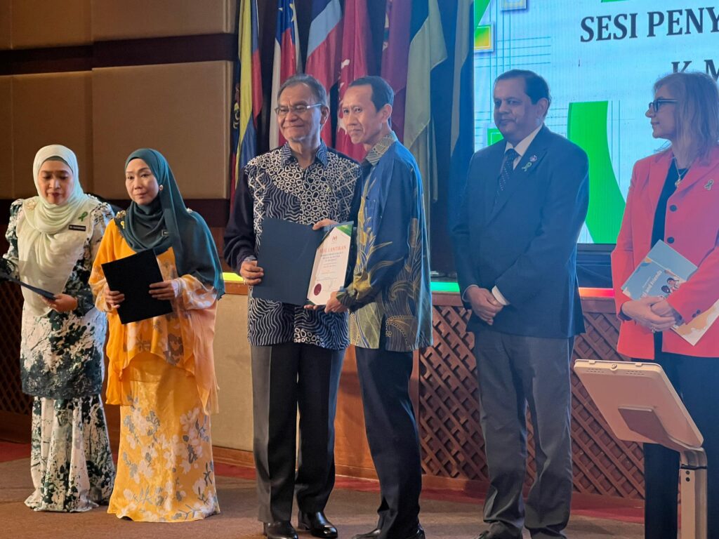 Yang turut hadir, Timbalan Ketua Pengarah Kesihatan (Kesihatan Awam), Datuk Dr. Norhayati Rusli dan Timbalan Ketua Pengarah Kesihatan (Perkhidmatan Farmasi), Norhaliza A. Halim.